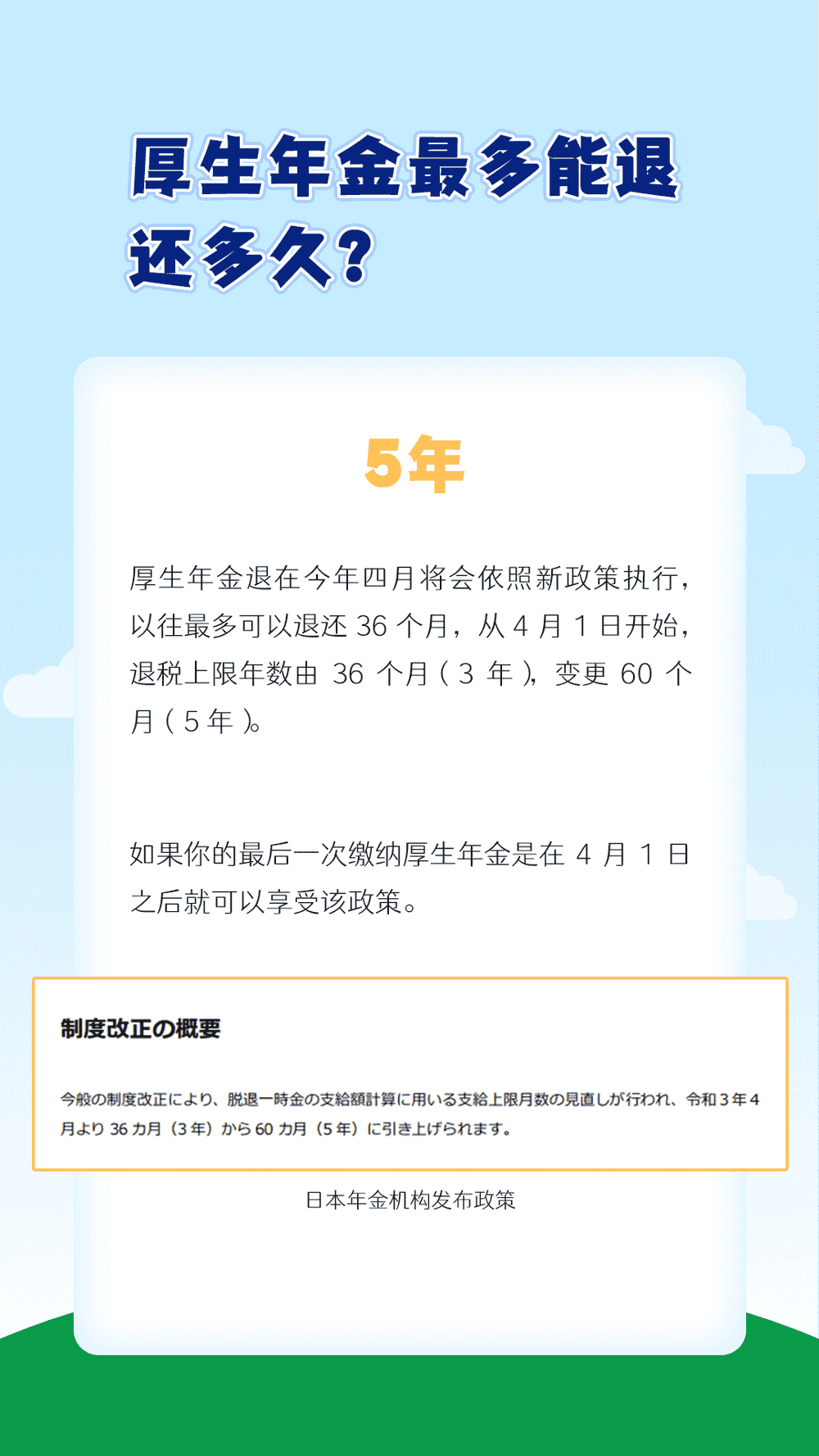 厚生年金可以退五年啦!